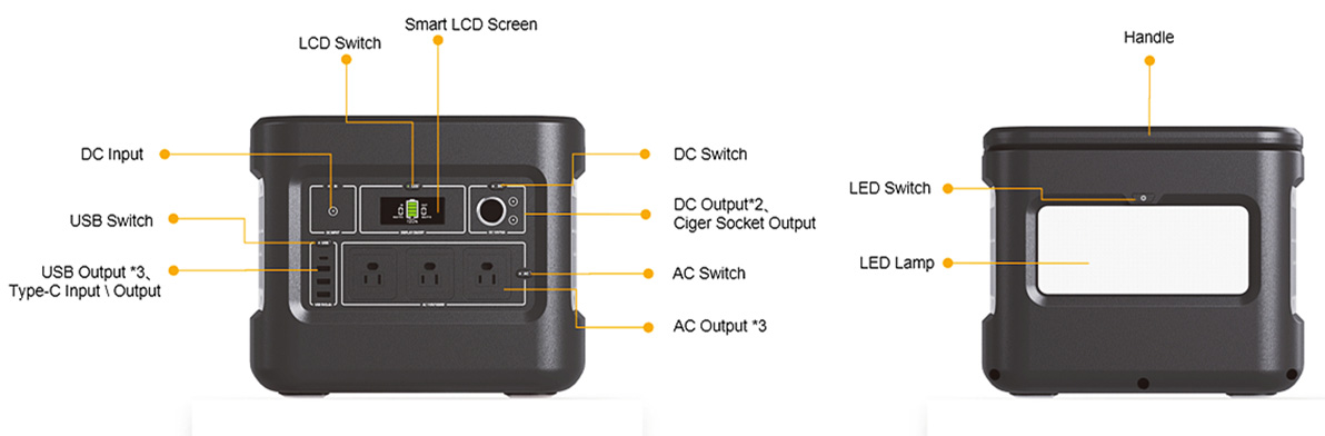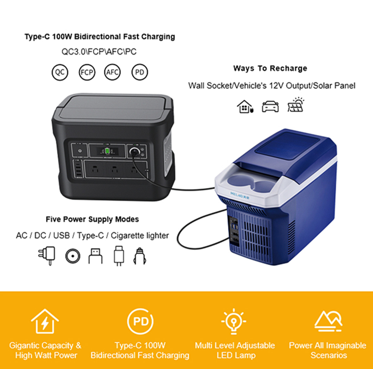 Αυτός ο φορητός σταθμός ισχύος 1000W υποστηρίζει μια ποικιλία από ηλεκτρικές συσκευές, όπως μίνι ψυγείο, βραστήρα, ηλεκτρική λάμπα κ.λπ.