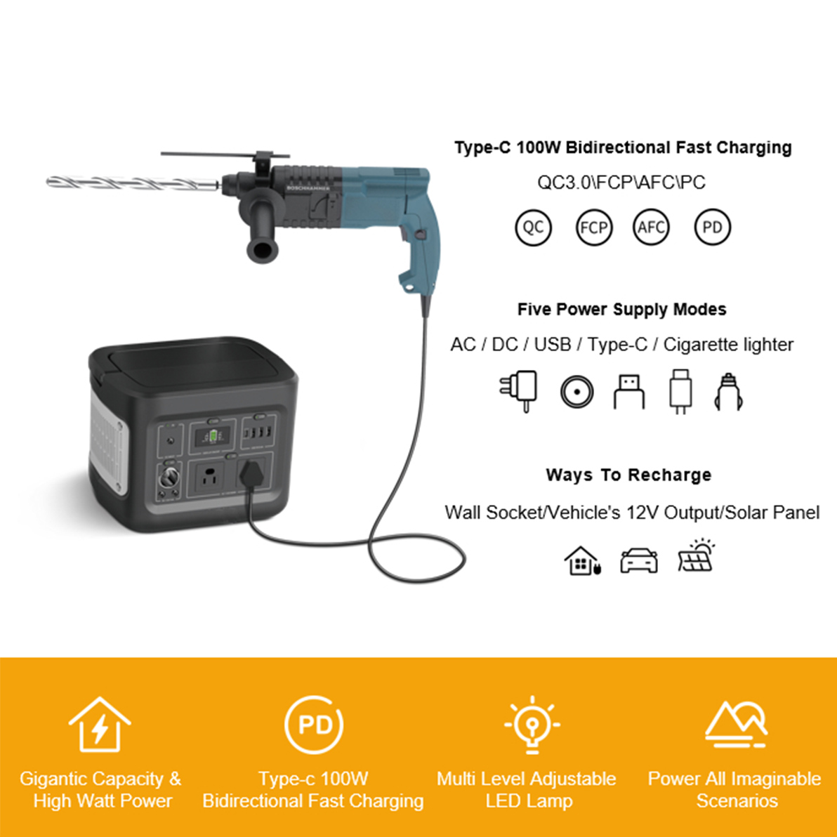 Με αυτόν τον φορητό σταθμό παραγωγής ενέργειας, μπορείτε επίσης να απολαύσετε τη χρήση ηλεκτρικών εργαλείων τρυπανιού σε εξωτερικούς χώρους.